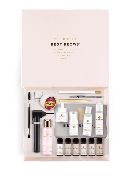V krabičke nájdeš nástroje na čistenie, prípravu, dizajn a farbenie, ako aj doplnkové pomôcky pre kompletný priebeh stylingu obočia.